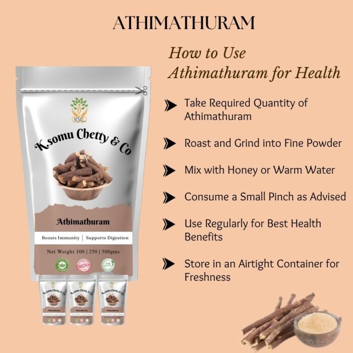 For pure and traditionally sourced Athimathuram, consider purchasing from K Somu Chetty & Co – a trusted name in natural and herbal products in Tamil Nadu. They offer handpicked, chemical-free Athimathuram that is safe for daily consumption.