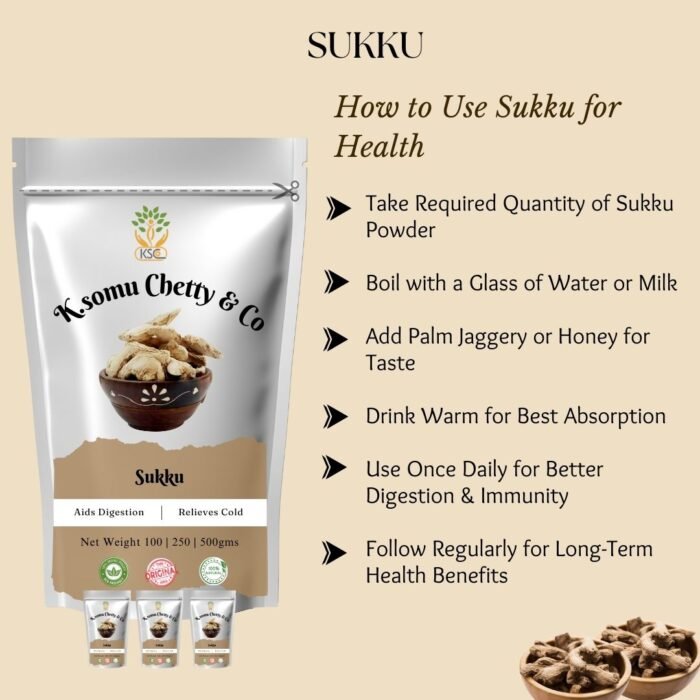 For pure and traditionally sourced Sukku, consider purchasing from K Somu Chetty & Co – a trusted name in natural and herbal products in Tamil Nadu. They offer handpicked, chemical-free Sukku that is safe for daily consumption.​